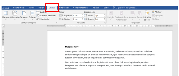 1 – No documento que deseja configurar, clique no menu “Layout”.