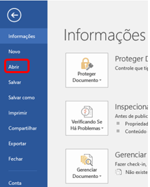 Mas, caso essa mensagem não apareça, ainda é possível proceder com a recuperação. Basta clicar em “Arquivo” e escolher a opção “Abrir”: