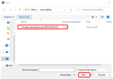 Uma janela vai se abrir, parecida com aquela que utilizamos para salvar documentos, com uma lista dos arquivos que foram salvos de forma automática. Encontre o seu, selecione e clique em “Abrir” para editá-lo e salvá-lo.