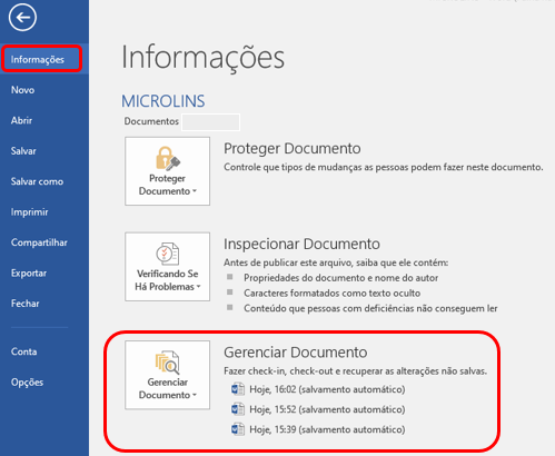 Para recuperar, vá em “Arquivo” e escolha a opção “Informações”. Ao lado de “Gerenciar Documento” estarão todas as versões disponíveis, basta selecionar uma delas e clicar em “Restaurar”.