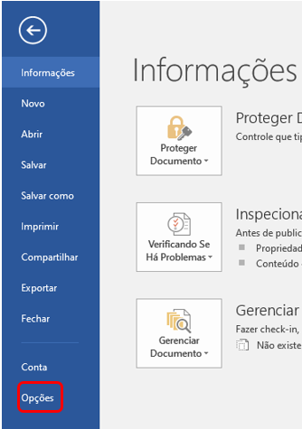 Primeiro, clique em “Arquivo” e escolha “Opções”: