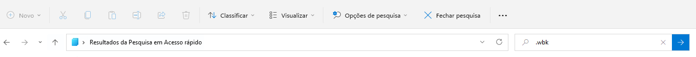 Caso você perca um documento antes de salvá-lo, basta ir até o Explorador de Arquivos e digitar “.wbk” na barra de pesquisa. Encontre o documento e clique duas vezes sobre ele para editá-lo no Word.