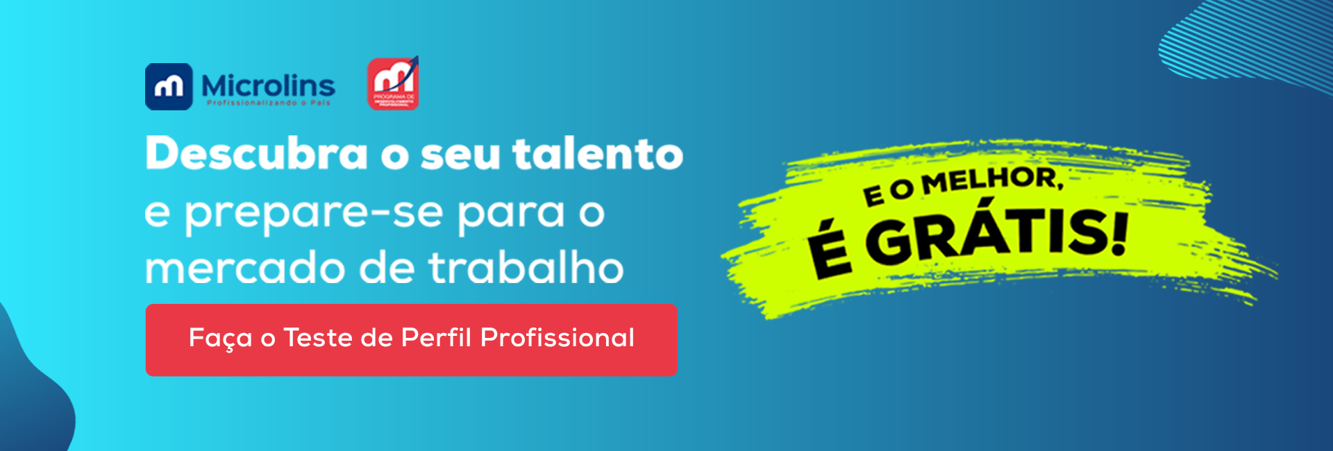 Faça agora o Teste de Perfil Profissional da Microlins e descubra suas aptidões com base no seu comportamento, seus talentos e sua forma de aprender.